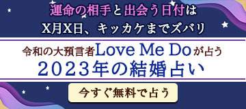 Love Me Doの公式サイトでは、運勢ランキングだけでなく、2023年の運勢や運命の出会い、人生の転機まで全て数字で占うことが出来ます。具体的な日付まで当たるLove Me Do先生の占いをぜひ試してみてください。